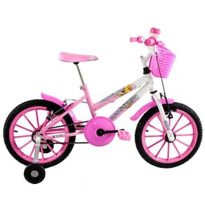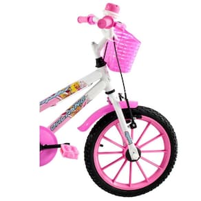 Bicicleta Feminina Infantil Aro 16, modelo Milla, com cestinha, cor Branco com Rosa - Dalannio Bike