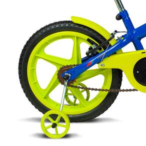 A Bicicleta Infantil aro 16 Rock Azul e Verde possui quadro, garfo e guidão em aço carbono. Ela é ideal para deixar a diversão mais completa. O aro 16 auxilia na destreza e no aperfeiçoamento do equilíbrio, com o passar do tempo existe a possibilidade de tirar as rodas auxiliares.
