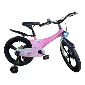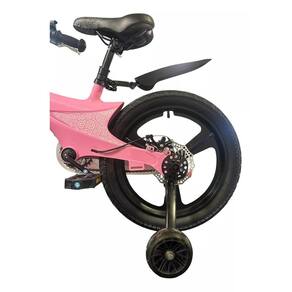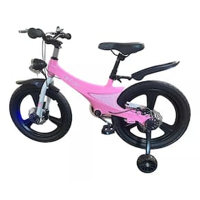 Bicicleta infantil rosa aro 18 com farol, freios a disco, campainha e rodinhas