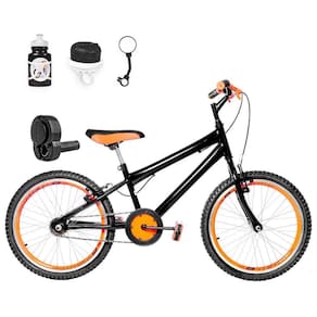 Possui rodinhas laterais para auxiliar na fase de aprendizagem, e a opção de utilizar o descanso lateral (pézinho) que também acompanha o produto.