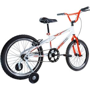 O guidão estilo cross com suporte em alumínio dá firmeza na pilotagem, enquanto os freios V-Brake dianteiro e traseiro garantem paradas rápidas e seguras. E para completar, as rodinhas laterais acompanham a fase de adaptação com equilíbrio e apoio, permitindo que seu filho se divirta com mais liberdade — e pais, com muito mais tranquilidade.