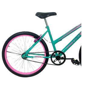 Bicicleta Infantil Aro 24 Cesta Feminina Verde Anis / Rosa
