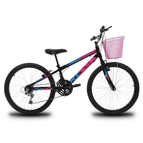 Quadro e Garfo fabricados em aço carbono; Aros fabricados em alumínio; Adesivos em alto brilho; 18 Marchas; Câmbio dianteiro: Verificar Disponibilidade; Câmbio traseiro: Verificar Disponibilidade; Tipo de trocador de marchas: Luvinha; Freios V-Brake; Raios: Aço 2.0x185mm; Manopla em borracha; Garfo: Standard rígido; Movimento central: 4,5 cm; Caixa de direção: Standard; Canote do selim: Aço carbono; Pedivela: Monobloco, 165mm; Pneus: 24x1,95 Faixa Branca; Coroa dianteira: Tripla 28x38x48 dentes, aço carbono, IMPORTARDO; Peso suportado: Até 85 kg;