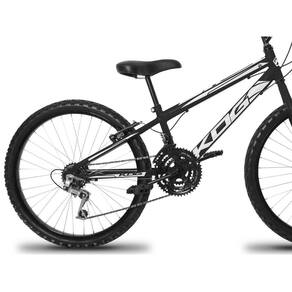 Quadro e Garfo fabricados em aço carbono; Aros fabricados em alumínio; Adesivos em alto brilho; 18 Marchas; Câmbio dianteiro: Verificar Disponibilidade; Câmbio traseiro: Verificar Disponibilidade; Tipo de trocador de marchas: Luvinha; Freios V-Brake; Raios: Aço 2.0x185mm; Manopla em borracha; Garfo: Standard rígido; Movimento central: 4,5 cm; Caixa de direção: Standard; Canote do selim: Aço carbono; Pedivela: Monobloco, 165mm; Pneus: 24x1,95 Faixa Branca; Coroa dianteira: Tripla 28x38x48 dentes, aço carbono, IMPORTARDO; Peso suportado: Até 85 kg;