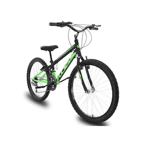 Quadro e Garfo fabricados em aço carbono; Aros fabricados em alumínio; Adesivos em alto brilho; 18 Marchas; Câmbio dianteiro: Verificar Disponibilidade; Câmbio traseiro: Shimano Tourney 6v Tipo de trocador de marchas: Luvinha; Freios V-Brake; Raios: Aço 2.0x185mm; Manopla em borracha; Garfo: Standard rígido; Movimento central: 4,5 cm; Caixa de direção: Standard; Canote do selim: Aço carbono; Pedivela: Monobloco, 165mm; Pneus: 24x1,95 Faixa Branca; Coroa dianteira: Tripla 28x38x48 dentes, aço carbono, IMPORTARDO; Peso suportado: Até 85 kg;