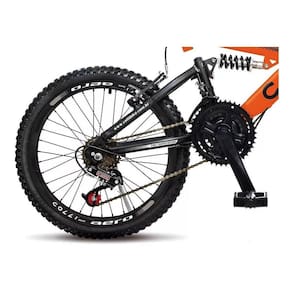 DIFERENCIAIS DO PRODUTO: • Dupla suspensão • 21 marchas/trocador na luva • Aro aero/ 36 raias • Freio v-break • Quadro aço carbono • Pedivela braço engrenagem 34.7