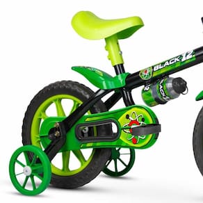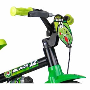BICICLETA INFANTIL COM RODINHAS - ARO 12 - BLACK 12 - NATHOR: perfeita para criança que tem muita vontade de começar a pedalar. Indicada para crianças a partir de 3 anos ou com altura entre 90cm e 1m. É muito resistente e segurança. A Bicicleta Nathor Aro 12 Black 12 é equipada com os melhores itens de segurança e conforto para crianças. Com o limitador de giro, a criança garante mais equilíbrio e segurança ao pedalar. A regulagem de ângulo do guidão e da altura do selim permitem que a postura do ciclista se mantenha correta, além de possibilitar que a bicicleta seja usada por mais tempo - acompanhando o crescimento. O movimento central avançado facilita o pedalar, estimulando o aprendizado. A Bicicleta Infantil Black 12 também tem uma relação de transmissão que foi desenvolvida para que a velocidade que a criança atinge pedalando seja a mesma de um adulto andando; ou seja: os pais conseguem acompanhar a brincadeira com tranquilidade, garantindo ainda mais segurança durante a diversão! CARACTERÍSTICAS: - Quadro, garfo e guidão em aço carbono - Limitador de giro do guidão - Freio a tambor - Regulagem de ângulo do guidão e da altura do selim - Pneus em E.V.A - Garrafinha e cestinha ou plaquinha - Mesa de direção em nylon reforçado INFORMAÇÕES: • Produto: Bicicleta Black 12 • Marca: Nathor • Tamanho da roda: 12 • Tipo: Bicicleta Infantil com Rodinhas • Altura máxima recomendada: 90 cm a 100 cm • Peso máximo recomendado: 21 kg • Dimensões do produto (CxAxL): 82cm x 55cm x 50cm • Idade recomendada: para crianças a partir de 3 anos de idade ESPECIFICAÇÕES - REF: 100010160035 - Cores predominantes: Preto e Verde - Certificado: CE-BI/INNAC 00407-01A NM 301/2004 BENEFÍCIOS DE ANDAR DE BICICLETA - Fortalece a massa óssea, articulações e músculos - Reduz a ansiedade e o estresse - Estimula a atenção e o senso de direção e noção de espaço - Estimula o equilíbrio e a coordenação motora - Combate a obesidade e aumenta a resistência física - Colabora com a autoestima e a autoconfiança - Estimula a criatividade e imaginação AVISO: As imagens são meramente ilustrativas. As cores e estampas dos produtos podem ter variações. As informações são de responsabilidade do fabricante ou fornecedor. ATENÇÃO Comprar Bicicleta Black 12 Infantil - Aro 12 - Nathor ficou fácil. Aproveite nossas condições de pagamento. Oferta válida por tempo limitado ou enquanto durarem os estoques.