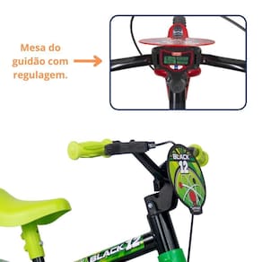 Com o limitador de giro, a criança garante mais equilíbrio e segurança ao pedalar. A regulagem de ângulo do guidão e da altura do selim permitem que a postura do ciclista se mantenha correta, além de possibilitar que a bicicleta seja usada por mais tempo acompanhando o crescimento.