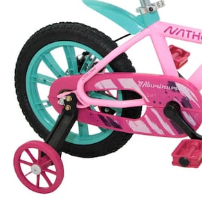 Bicicleta Aro 14 Infantil Feminina FirstPro Atenção: - A FirstPro é ideal para crianças com idade entre 4 a 6 anos - Altura recomendada: entre 95cm e 110 cm - Peso máximo recomendado: 25kg A First Pro Aro 14 é um novo conceito de bicicletas infantis. Ela é feita de alumínio, com freio a disco e rolamentos em todos os movimentos, assim como uma bicicleta adulta. A bicicleta possui ainda uma maçaneta de freio com um sistema que proporciona facilidade na regulagem do freio e que prioriza a segurança da criança. A roda lateral possui altura ajustável. Com um simples ajuste, a criança é estimulada ao melhor desenvolvimento do equilíbrio. Além dos benefícios, a primeira bicicleta infantil estará disponível em cores modernas e com adesivos personalizados. Algumas Características: - Freio a disco - Quadro, guidão e garfo em alumínio - Mesa Head-Set - Aro em ABS - Pneus e câmara de borracha - Eixo dianteiro e traseiro com rolamentos - Selim em PU - Abraçadeira do Selim em Alumínio - Maçaneta em Nylon reforçado e com ajuste de freio - Guidão com limitador de giro - Trava de segurança - Roda Lateral com ajuste de altura - Idade mínima recomendada: A partir de 4 a 6 anos - Peso da bicicleta: 7kg - Peso máximo recomendado: 25kg - Altura máxima recomendada: 95 - 110 cm Marca: Não Informado