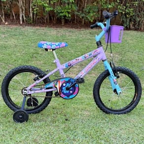 Bicicleta Infantil Feminina Aro 16, ideal para meninas de 4 anos! Design encantador com cestinha, rodinhas laterais para equilibrio e quadro resistente. Freios eficientes garantem seguranca nas aventuras. Perfeita para passeios divertidos ao ar livre. Cores vibrantes e detalhes que encantam. Incentive a diversao e o aprendizado com esta linda bike infantil. Aproveite!
