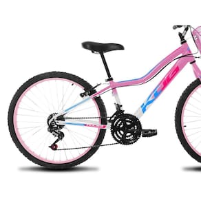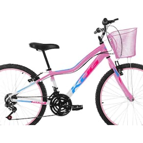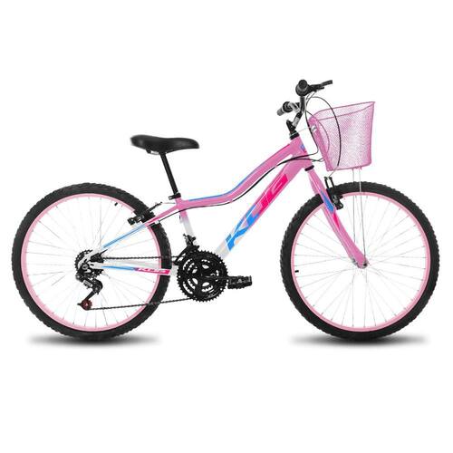 Bicicleta Infantil Feminina Aro 24 KOG Alumínio 18V C Cestinha - Cor: Branco Degrade+Rosa