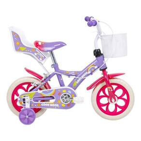 Bicicleta infantil aro 12 good mood freio ferradura traseiro sem marchas com cestinha e cadeirinha de boneca good mood aro 12 flower