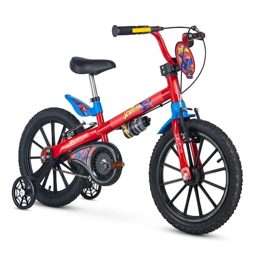 A bicicleta aro 16 Nathor possui modelos com aro em ABS e em alumínio. O limitador de giro evita que o guidão vire completamente, proporcionando mais segurança e preservando o freio. Para facilitar o aprendizado e a identificação do freio traseiro, a maçaneta amarela ganha destaque e indica o acionamento ideal na hora da frenagem. As rodinhas laterais permitem o desenvolvimento da criança na fase de aprendizado, estimulando o equilíbrio e a autonomia. A aro 16 tem pneus com câmara, quadro em aço carbono e garrafinha. Indicada para crianças a partir de 5 anos ou com altura entre 1,10 m e 1,20 m.