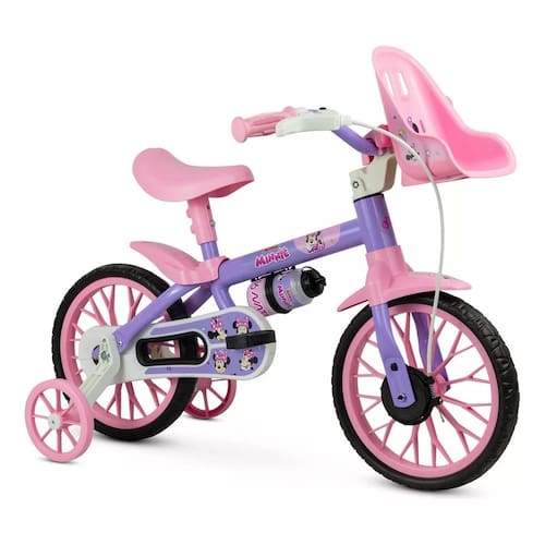 Bicicleta Infantil Nathor Aro 12 Minnie Rodinhas Segurança Bicicleta marca Nahor aro 12 com rodinhas de segurança. Tamanho do aro é de 12. Acompanham dois modelos de cestinhas. Quadro, garfo e guidão em aço carbono. Possui limitador de guidão o que dá maior segurança no uso. Selim com regulagem de altura. Freio dianteiro. Mesa do guidão com regulagem. Peso da bicicleta é de 3,980kg. Indicada para uso de crianças com altura entre 90cm a 100cm. Peso máximo suportado é de 21kg. Dimensões: 82x55x50cm C x A x L . Ean: 7898322524846