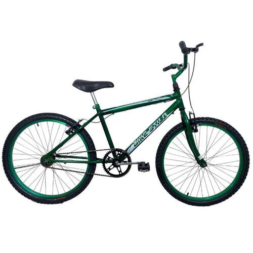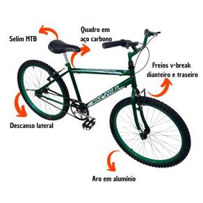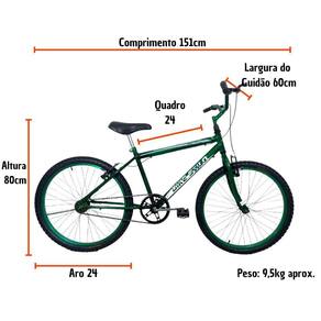 - Quadro: aro 24 em aço carbono com pintura eletroestática com suporte para freios V-brake;