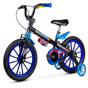 A bicicleta aro 16” Nathor possui modelos com aro em ABS e em alumínio. O limitador de giro evita que o guidão vire completamente, proporcionando mais segurança e preservando o freio. Para facilitar o aprendizado e a identificação do freio traseiro, a maçaneta amarela ganha destaque e indica o acionamento ideal na hora da frenagem. As rodinhas laterais permitem o desenvolvimento da criança na fase de aprendizado, estimulando o equilíbrio e a autonomia. A aro 16” tem pneus com câmara, quadro em aço carbono e garrafinha. Indicada para crianças a partir de 5 anos ou com altura entre 1,10 m e 1,20 m.
