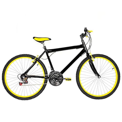 Bicicleta Masculina Aro 26 Mtb Alumínio Colorido 18 Marchas Cor Preta E Amarela