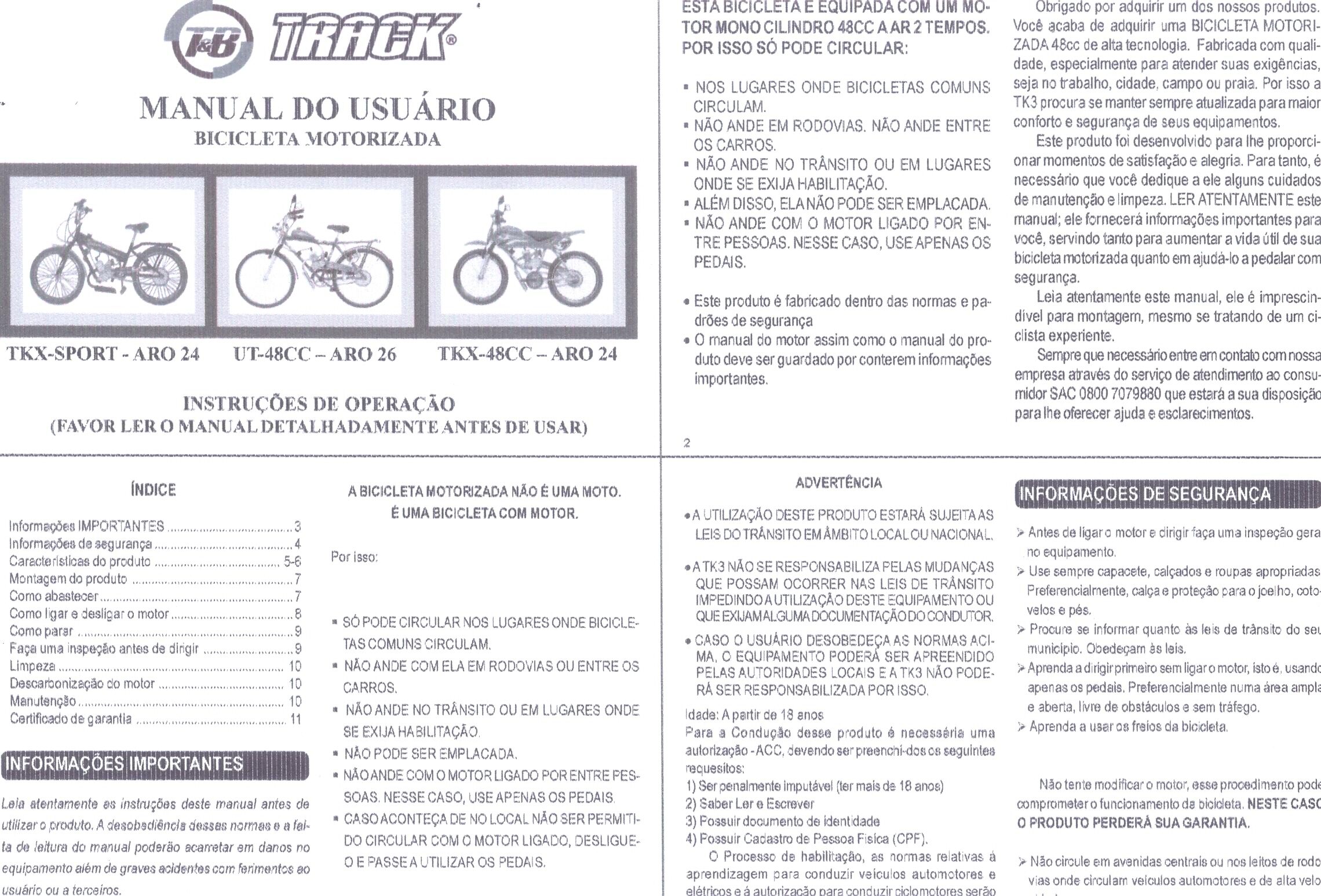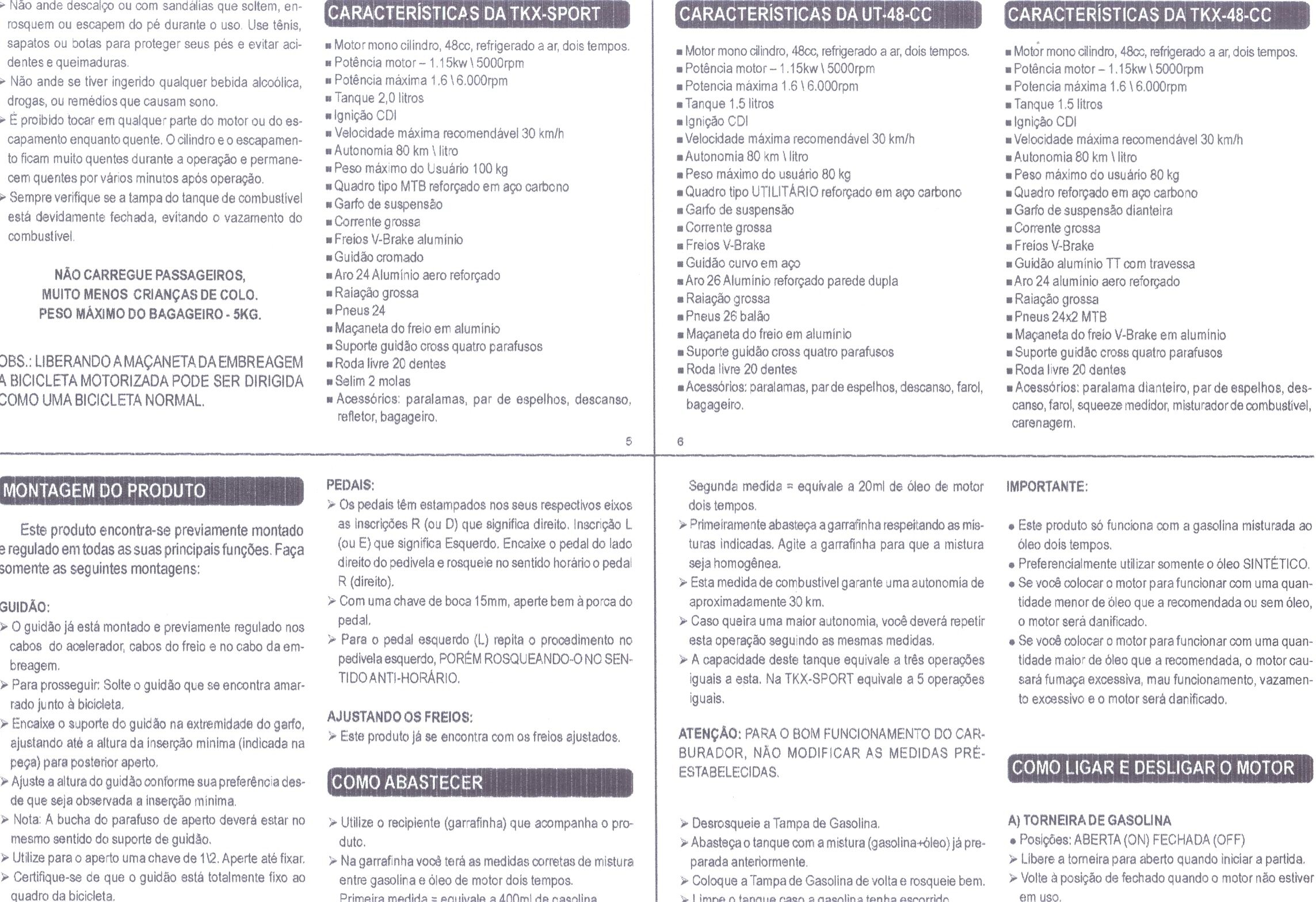Conta também, com maçaneta V-Brake em alumínio, reservatório de 2 litros, utilizando a mistura de óleo e gasolina, bem como suspensão traseira que proporciona conforto, segurança e comodidade aos usuários.