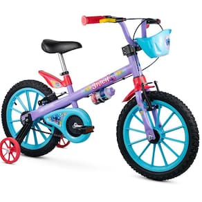Bicicleta Infantil com Rodinha aro 16 Stitch Menina Nathor Indicada para crianças a partir de 5 anos ou com altura entre 1,10 m e 1,20 m. Segurança: O limitador de giro evita que o guidão vire completamente, garantindo mais segurança e preservando o freio. Fácil Identificação: A maçaneta de freio traseiro em amarelo destaca-se para facilitar o aprendizado na frenagem. Aprendizado: As rodinhas laterais auxiliam no desenvolvimento do equilíbrio e da autonomia da criança. Estrutura: Pneus com câmara, quadro em aço carbono e garrafinha inclusa. Características: Quadro, garfo e guidão em aço carbono; Limitador de giro do guidão; Freios v-brake com maçanetas em nylon reforçado e ajuste; Mesa headset com regulagem de ângulo do guidão; Rodinhas laterais; Para-lamas em ABS; Movimento de direção com ; Arruela com trava de segurança; Pneus com câmara; Abraçadeira do selim em alumínio; Manual de montagem Pronto para Pedalar Marca: Não Informado