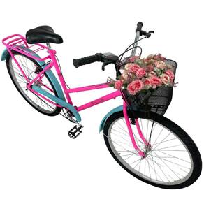 Bicicleta Retrô Aro 26 Freio V-Brake Cesta Rosa / Anis