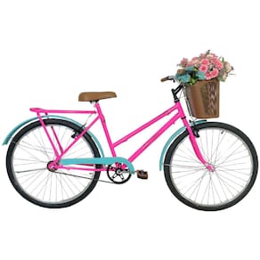 Bicicleta Retrô aro 26' foi um modelo criado durtante o período do dia das mães visando a necessidade. É um modelo clássico, com design retrô, excelente para uso em perímetro urbano e ótimo custo-benefício. Elegância nos passeios, design único, ideal para passear em parques, praias e áreas urbanas. Vem equipada com cesta e bagageiro que possibilita a instalação de cadeirinhas para crianças, sua cesta comporta até 4kg, indicada para transportar pequenos volumes. Suas rodas são montadas com raiação dupla proporcionando maior resistência. Paralama e cobre corrente são acessórios que protegem o ciclista contra respingos em caso terrenos com lamas ou água.