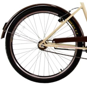 Características: - Quadro, Garfo, Guidão e Canote do Selim em Aço Carbono - Engrenagem 46D em Aço - Freio V-Brake em Nylon - Maçaneta de Freio em Nylon - Manopla Plástica - Movimento Central e de Direção com Esferas - Pedal Plástico - Pedivela Monobloco - Pneus e Câmaras de Ar tamanho 26 - Aros Aero em Alumínio - Cubo de Aço - Raios Fino Zincado - Selim Personalizado em RVS - Paralama - Cobre Corrente - Idade Recomendada Adulto