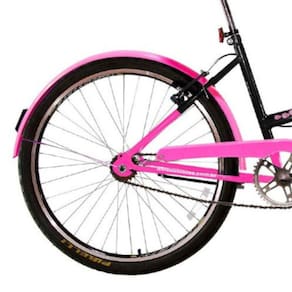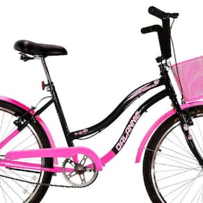 Bicicleta Feminina para passeio com Quadro tamanho 18, Aro 26, Modelo Beach Retrô, marca Dalannio Bike, cor Preto com Rosa Chiclete.
