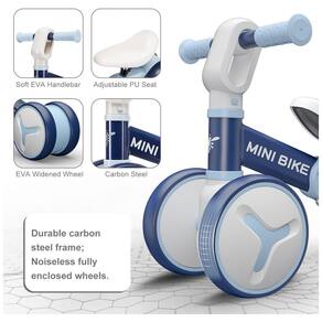 PROJETADO PARA 12 36 MESES Atualizamos nossas bicicletas de equilíbrio anteriores com assento ajustável, rodas e quadros maiores e também materiais de melhor qualidade. As crianças pequenas podem desfrutar de passeios em ambientes internos e externos. ESPERAR A ENERGIA DAS CRIANÇASUma bicicleta de equilíbrio robusta e durável não apenas tornará as crianças mais saudáveis, mas também as tornará mais confiantes. O que faz mais sentido é que também pode ajudá los a fazer seus primeiros amigos FÁCIL DE MONTAR O pacote vem com instruções em inglês com fotos, leva apenas 5 minutos para montar. DESIGN DE SEGURANÇA A direção restrita de 135 graus reduz a ocorrência de quedas laterais, as rodas totalmente fechadas evitam que os bebês fiquem presos nos pés Marca: Não Informado