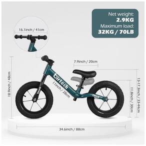 A PRIMEIRA BICICLETA DOS SEUS FILHOS Nossa nova bicicleta de equilíbrio foi projetada para crianças, meninos e meninas de 2 a 6 anos que têm a capacidade de andar de bicicleta. As crianças ficarão orgulhosas de possuir suas próprias bicicletas. Desenvolva o equilíbrio, ganhe confiança, aventure se com os amigos. A bicicleta de treinamento oferece uma maneira segura, fácil e eficiente de uma transição mais fácil para a bicicleta a pedal. Cerca de 90 Pré instalado: A bicicleta de equilíbrio está parcialmente instalada.