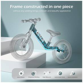 ESTRUTURA DE NYLON INTEGRADA Construída em grau aeronáutico PA6 e moldagem integrada de fibra de vidro, a estrutura construída em uma peça sem qualquer soldagem traz uma aparência suave e bonita. A estrutura de náilon é resistente e leve, pesa cerca de 2,9 quilogramas, o design leve da estrutura da bicicleta torna a bicicleta mais fácil de controlar para as crianças.