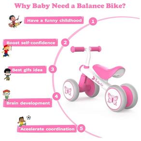 Idade recomendada Esta bicicleta de equilíbrio para bebês é adequada para crianças de 12 a 24 meses. É o melhor presente de 1 aniversário para crianças aprenderem a andar e andar de bicicleta. Ajuda a desenvolver o equilíbrio, a direção, a coordenação e a confiança das crianças desde cedo. Presente Perfeito para 1 Ano Este presente perfeito de 1 aniversário é feito de material de alta qualidade.ASTM F963 11, certificação EN71, livre de BPA. Certifique se de que eles são s para o bebê. Passeio Sem pedal e roda fechada totalmente alargada para evitar prender os pés do bebê. O limite de direção de 135 evita que o bebê tombe. Fácil de montar Você pode instalar esta bicicleta de equilíbrio infantil em menos de 3 minutos, vem com instruções manuais e pic. Fácil de transportar Marca: Não Informado