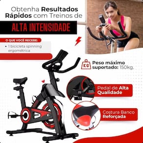 Bicicleta Spinning Ergométrica com Monitor 150kg Cor: Preto Tipo: mecânica A Bicicleta Ergométrica Mecânica é a solução ideal para quem deseja adotar um estilo de vida mais saudável. Ela possui um design moderno e ergonômico, além de recursos avançados, que permitem que você realize exercícios de alta intensidade sem o risco de lesões. Ela também é equipada com um sistema de resistência de alta qualidade para proporcionar uma experiência de treino segura e eficiente. Com a Bicicleta Ergométrica Mecânica, você pode alcançar seus objetivos de saúde e fitness, melhorar seu bem-estar e manter-se em forma. A resistência mecanica proporciona ao usuário um maior controle, durabilidade e menor ruído, além de reduzir a necessidade de manutenção. Além disso, é possível ajustar facilmente o nível de resistência para obter um treino mais intenso ou para simular a sensação de pedalar em diferentes terrenos. Excelente opção para quem procura praticidade e versatilidade, ela é ajustável para usuários de diferentes estaturas e é capaz de suportar até 150kg de peso. O guidão, o assento e as correias dos pedais podem ser regulados, proporcionando maior segurança e conforto durante os treinos. - Guidão ajustável - Correias de pedal ajustáveis - Assento ajustável - Suporte para garrafa dágua - Possui rodas na base que facilitam o transporte Cor: Preto Material: Ferro, plástico, espuma, material sintético Tipo de bicicleta: Spinning Tipo de resistência: Mecânica Funções do display: Scan, tempo, velocidade, distância, calorias, hodômetro, batimentos cardíacos Alimentação do display digital: 2 pilhas AAA não incluídas Peso da roda da inercia: 15kg Peso máximo suportado: 150 kg Inclui: 1 Bicicleta Ergométrica Mecânica Lembre-se Fazer um aquecimento antes dos exercícios é importante para preparar o corpo para a atividade física que está por vir. O aquecimento aumenta a temperatura corporal e ajuda a aumentar a flexibilidade, a força muscular e a resistência. Também aumenta o fluxo sanguíneo e a circulação para os músculos, reduzindo o risco de lesões. O aquecimento também ajuda a melhorar o desempenho durante o exercício e aumenta a motivação para começar a atividade. Dimensões do produto: Constam nas imagens Imagens ilustrativas. As tonalidades podem variar. Valor referente à 1 uma unidade.