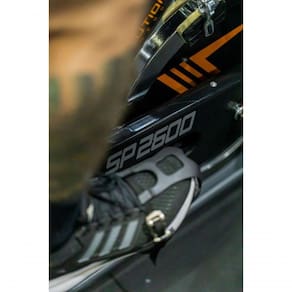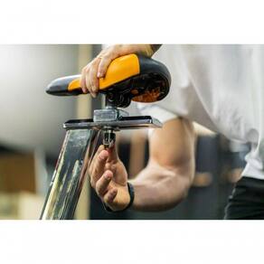A bicicleta spinning SP 2600 conta com ajuste horizontal e ical do selin, além do pegador emborrachado que conta com ajuste de altura e distância.