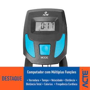 CARACTERÍSTICAS: Marca: Acte Sports Modelo: E17 Tipo: Bicicleta de Spinning Profissional Cor: Azul Material: Aço e ABS Roda de Inércia: 13 kg Sistema de Resistência: Mecânica Transmissão: Correia Monitor LCD: Tempo, velocidade, distância, distância total, calorias e frequência cardíaca Sensor de Batimentos Cardíacos: Sim Pedais com Alça de Ajuste: Sim Assento: Ajustável horizontal e verticalmente Guidão: Ajustável na vertical Capacidade Máxima Suportada: 100 kg