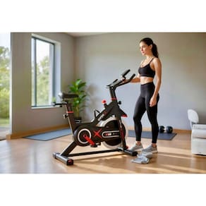 • Uso residencial, clínicas, estúdios, condomínios e academias comerciais.• Disco de inércia (Flywheel): 10 kg.• Tração / transmissão por correia (funcionamento mais silencioso, pedalada suave, sistema mais limpo e de menor necessidade de manutenção do que transmissão por corrente)