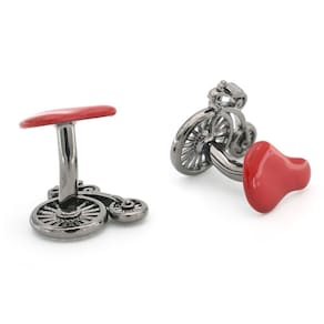 Material: cobre puro Tamanho: 1,5 cm × 2,6 cm Peso: 12 g Design de bicicleta vintage: apresenta um charmoso design de bicicleta retrô com uma estrutura de cobre detalhada e assento em esmalte vermelho, adicionando um toque divertido ao seu traje. Artesanato de cobre premium: feito com cobre de alta qualidade para maior durabilidade e um visual vintage polido que se destaca sem ser excessivamente ousado. Perfeito para entusiastas do ciclismo: ideal para amantes do ciclismo ou para qualquer pessoa que aprecie acessórios exclusivos e divertidos que reflitam sua paixão por bicicletas e atividades ao ar livre. Estilo versátil: essas abotoaduras são perfeitas para uso comercial e casual, o que as torna um ótimo complemento para qualquer guarda-roupa para eventos sociais, dias casuais ou roupas de escritório. Compactas e elegantes: medindo 1,5 cm x 2,6 cm, essas abotoaduras oferecem um toque único e discreto a qualquer camisa, perfeitas para adicionar personalidade ao seu look.