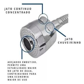 - Arejador para tubo de torneira gourmet flexível. - Fabricado: em ABS cromado de alta qualidade. - Duas opções de jato: continuo e chuveirinho. - Não acompanha o Tubo, somente Arejador. - indicado para Reposição