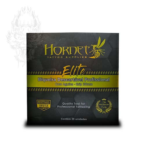 Os bicos da Hornet Tattoo Supplies modelo Elite tem uma pegada sensacional, com grip de 30 mm essa biqueira já vai montada com agulha e pronto para uso.