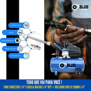 Bico Encher Pneu + Pino 1/4 Para Compressor Schulz Chiaperini Este kit é ideal para quem busca praticidade e eficiência em suas conexões pneumáticas. Composto por um pino conector de 1/4 x rosca macho 1/4 NPT e um inflador duplo de 150mm 1/4, ele é perfeito para diversas aplicações, como em compressores de ar, ferramentas pneumáticas e sistemas de ar comprimido. Detalhes do Kit:Pino Conector 1/4 x Rosca Macho 1/4 NPT Conector padrão de 1/4Rosca macho NPT de 1/4Material resistente e durávelIdeal para conexões rápidas e seguras em sistemas pneumáticos inflador Duplo 150mm 1/4 Inflador de 150mmConexão de 1/4Ideal para inflar pneus, bolas e outros infláveisConstrução robusta para uso intenso