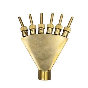 Bico para Fontes Chafariz e Lagos Tipo Leque Multijatos 6 Saídas com Regulador de Vazão Encaixe Rosca 1 Quer dar um toque extra de charme à sua fonte, chafariz ou lago Conheça o Bico para Fontes Chafariz Tipo Leque Multijatos Encaixe Rosca 1. Feito em aço inoxidável, este bico é resistente e vai agregar um toque especial ao seu projeto. Com 6 jatos fixos, ele cria um efeito de água exclusivo que certamente vai impressionar. Recomendamos uma motobomba de 3/4cv - 1cv para uma instalação com 1 bico e 6 saídas de 6mm, garantindo um jato com altura máxima de 4m. Afinal, os detalhes fazem toda a diferença, não é mesmo Características: Conexão: Rosca Interna de 1 Material: Latão Saída: 6 bicos com saída de 5mm Pressão Suportada: 50 - 150 Kpa Volume do Jato de Água: 6,5 - 13,5 m/h Altura Média do Jato de Água: 2-4 metros Itens Inclusos: 01 - Bico para Fontes Chafariz Tipo Leque Multijatos Encaixe Rosca 1 : 03 - meses contra defeitos de Fabricação. Atenção: A altura do jato de água alcançada depende da motobomba utilizada. Indicamos consultar um especialista para fazer o cálculo da vazão necessária da motobomba de acordo com a quantidade de bicos a serem instalados e da distância que os bicos irão ficar da motobomba. Marca: Não Informado