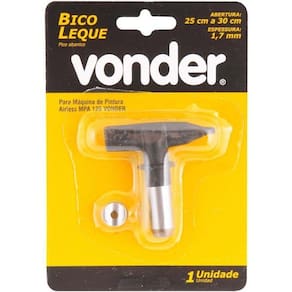 Indicado para Máquina de Pintura Airless VONDER. Para a abertura do leque e espessura indicada, utilizar a uma distância entre 350 mm a 400 mm da superfície a ser pintada.