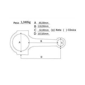 Especificações Comprimento 224,00MM Furo do Pino 32,00MM Mancal 60,30MM / Reta com bucha Motor Tração Combustível Motor II FIAT Ducato 2.8 8V 2003, 2004, 2005, 2006, 2007, 2008, 2009 8440.43/EURO3 Tração 4x2 Diesel Turbo Ducato 2.8 8V 1994, 1995, 1996, 1997, 1998, 1999, 2000, 2001 SOFIN Aspirado 00 - TODAS CATEGORIAS / 00 - FIAT 11 - BIELA / 11 - FIAT Recomendamos que a instalação seja realizada por um profissional qualificado. Garantia: 3 meses