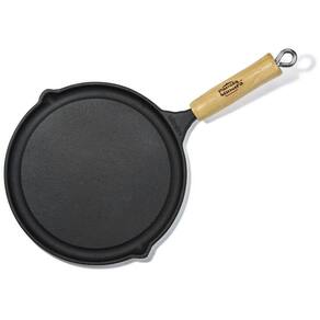 1 Bifeteira Lisa Redonda em ferro fundido 26 × 1,5 cm com cabo de madeira