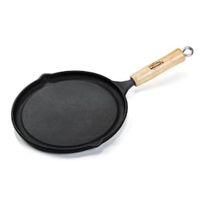 Bifeteira Lisa Redonda Cabo de Madeira 24cm em Ferro Fundido Panela Mineira - Especificações TécnicasDimensões Produto (Compr. X Larg. X Alt.): 24 x 24 x 1,5 cm.
