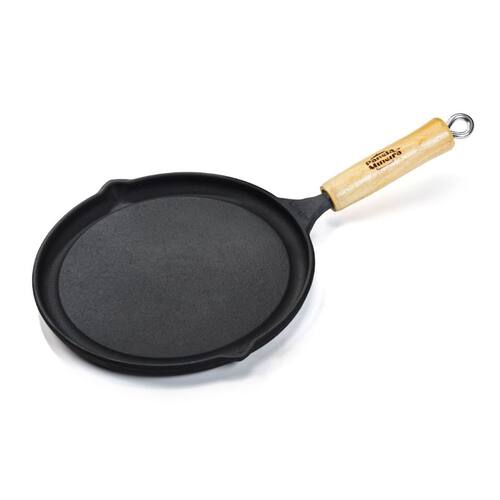 Bifeteira Lisa Redonda Ferro Cabo Madeira PanelaMineira 24cm