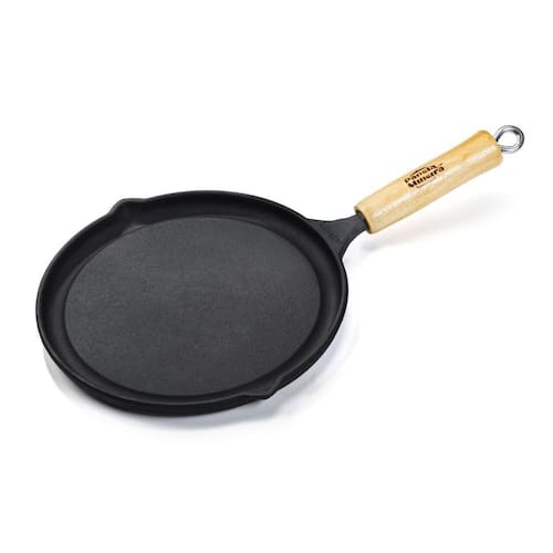 Bifeteira Lisa Redonda Ferro Cabo Madeira PanelaMineira 26cm