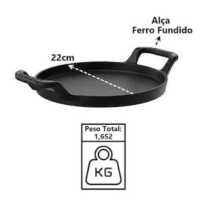 Bifeteira Redonda Alça Ferro Fundido Servir Porção 22cm