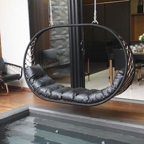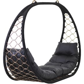 Big Balanço Suspenso Corda Náutica e Alumínio Trama para Área, Jardim, Piscina - Preto