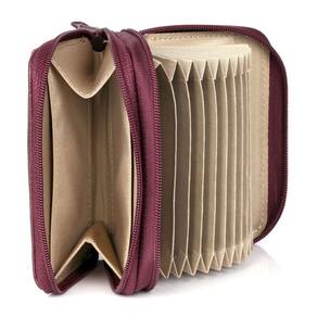 La billetera Hudson Pik-Me-Up Wizard está confeccionada en cuero naturalmente curtido y suave como mantequilla. Cuenta con un bolsillo frontal para deslizamiento, ventana para identificación, sección con cierre completo que incluye 9 compartimentos tipo acordeón para tarjetas de crédito y 2 bolsillos utilitarios, además de una sección con cierre tipo fuelle que ofrece 2 bolsillos utilitarios.