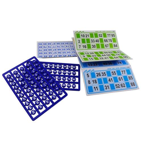 Bingo com 24 Cartelas e Bolinhas Jogo Bingo com Cartela. 24 Cartelas Numeradas. 90 Bolinha Numeradas. Placa para Colocar as Bolinhas Sorteadas.\nMarca : ARK Tipo de material : Papel e Plástico Cores ou Estampa : Cores Dimensões do Produto : 30 X 20 X 1,5 CM Peso Bruto (Gramas) : 0.180